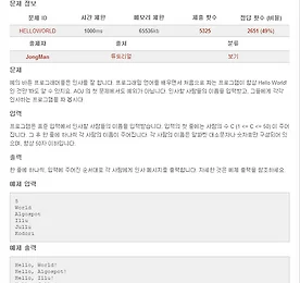 [알고스팟/ALGOSPOT] 1. HELLOWORLD 알고리즘 알고파 "알고라파덕" 제가 아는 알고리즘의 모든 정보를 다 담고 싶어서 시작하게 되었습니다~ 제가 풀은 알고스팟 문제들의 알고리즘적인 해법, 힌트를 공개 할 것이구요! 제가 배우고 사용하고 있는 알고리즘을 알고리즘을 공부하시는 분들께 도움이 될 수 있도록 알고리즘 강의 카테고리도 만들 예정입니다. 제가 푼 문제들을 중점으로 계속 포스팅을 할 것이구요! 개인적인 댓글이나 메시지로 소스 코드 질문, 아니면 저의 소스 코드를 보여드리려구 합니다! 그럼 첫 문제 HELLOWORLD부터 시작해서 쭉 해보겠습니다~ HELLOWORLD는 C언어 C++을 시작하시는 분들은 모두 보셨을 아주 기본적인 문제입니다. 입출력만 할 수 있다면 풀 수 있는 문제입니다. 1. 이름의 수를 한 개의 변수로 읽는다. N 2... 더보기 이전 1 ··· 16 17 18 19 다음